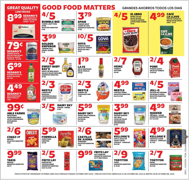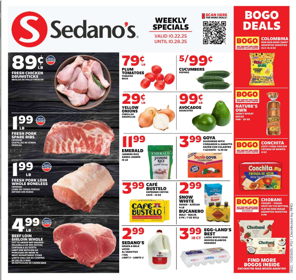 The Sedano’s Weekly Ad for 22-28oct, 2025 is here with fresh savings on groceries and household items. You can browse the flyer to find discounts on produce, meat, seafood, and pantry staples. Sedano’s weekly ad makes it easy to plan your shopping list and save money every week.